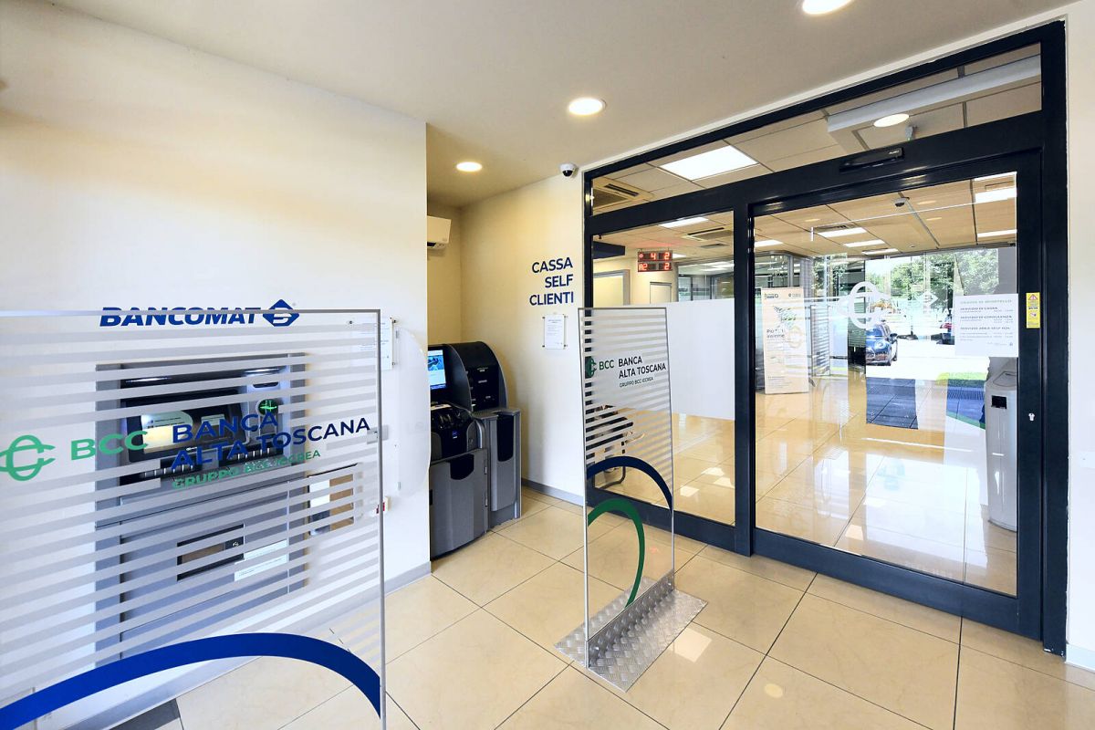 Banca alta Toscana - Ag. S. Piero Agliana - Intervento chiavi in mano per modifica del layout interno con creazione di area self e nuovo punto accoglienza, oltre ad ampliamento dell'agenzia e realizzazione di nuovi uffici.